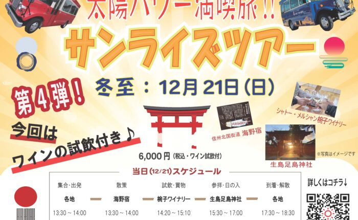 パワースポットの旅サンライズツアー【冬至 】編紀元前から使われ、太陽の動きから1年を24の季節に区切った二十四節気。二十四節気「春分」「夏至」「秋分」「冬至」の年4