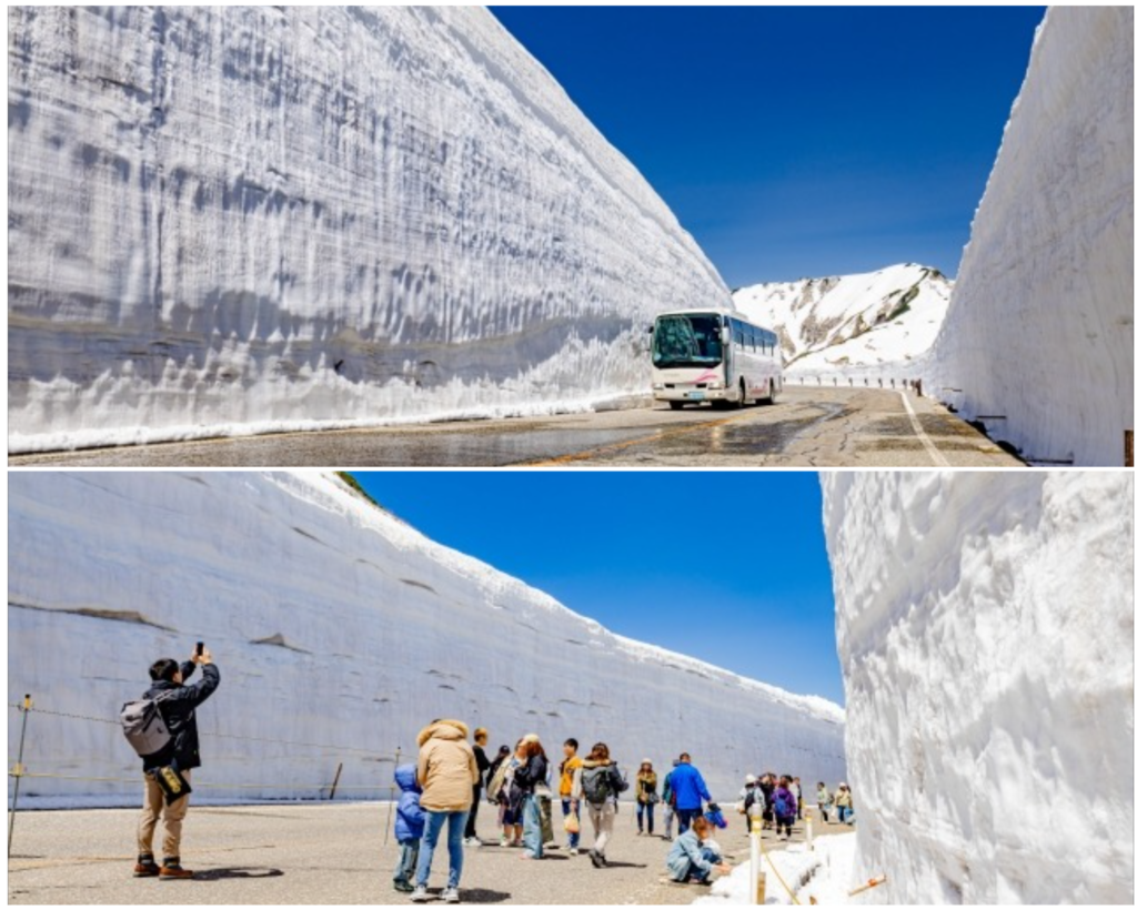 信州観光バス別所温泉営業所 6:00発 = 信州観光バス本社 7:00発 = 高速(休憩3カ所各15分) = 立山室堂「雪の大谷」11:40-13:20(見学・自由昼食) = 高速(休憩3カ所各15分) = 信州観光バス本社 18:00頃 = 信州観光バス別所温泉営業所 19:00頃