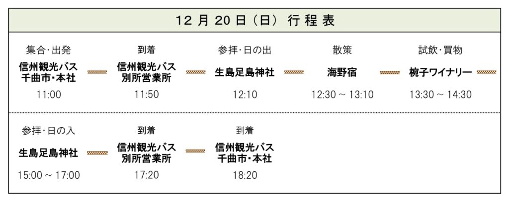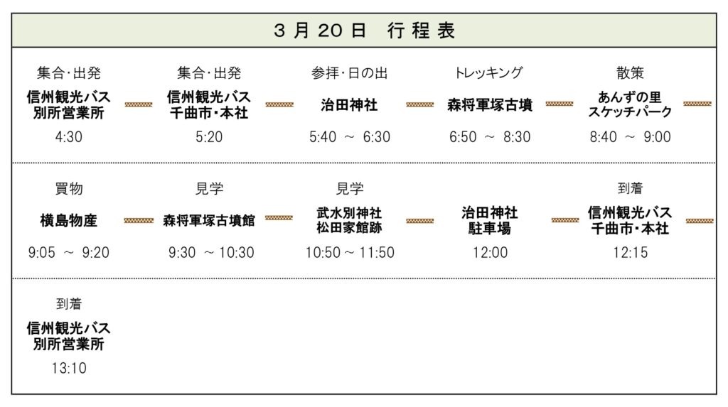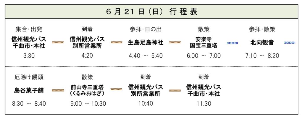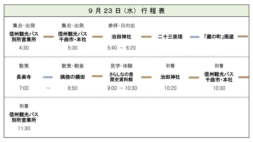 ※当日のお天気などの状況で時間・順番等の変更がある可能性がございますので、ご承知おきください。
