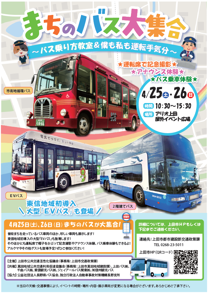 アリオ上田屋外イベント広場にて「まちのバス大集合」が開催されます。
