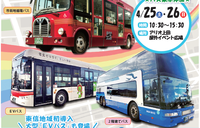 アリオ上田屋外イベント広場にて「まちのバス大集合」が開催されます。