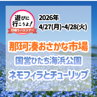 那珂湊おさかな市場・国営ひたち海浜公園のネモフィラとチューリップ【遊びに行こうよバスツアー】